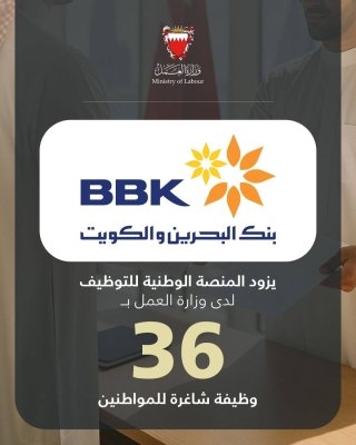 في إطار مواصلة الجهود الوطنية الرامية إلى توفير فرص عمل نوعية للمواطنين وتمكينهم من الإسهام الفاعل في مسيرة التنمية، أعلن سعادة السيد يوسف بن عبدالحسين خلف وزير الشؤون القانونية وزير العمل بالوكالة أن بنك البحرين والكويت قام بتزويد المنصة الوطنية للتوظيف التابعة لوزارة العمل بـ 36 وظيفة شاغرة مخصصة للمواطنين.