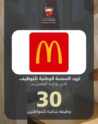 في إطار تنفيذ توجيهات صاحب السمو الملكي الأمير سلمان بن حمد آل خليفة ولي العهد رئيس مجلس الوزراء حفظه الله، بعرض 3 فرص وظيفية لكل باحث عن عمل مسجل لدى وزارة العمل، شركة فخرو للمطاعم تزود المنصة الوطنية للتوظيف بـ 30 وظيفة شاغرة للمواطنين.